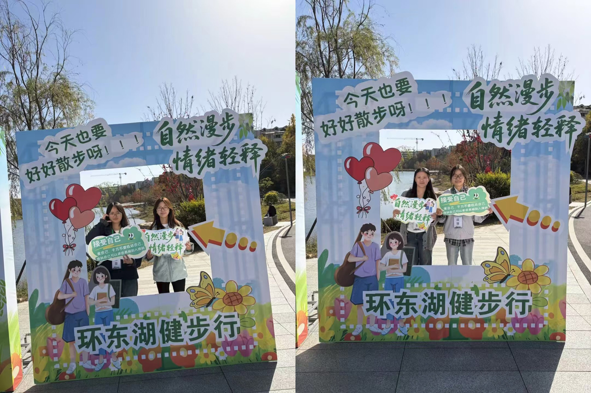 本次活动以“自然疗愈+情绪调节”为核心,将专业心理技巧与户外实践深度融合。活动伊始,心理教师摒弃冗长说教,针对性讲解“感官察觉”“呼吸调节”等易操作、见效快的情绪调节方法,为同学们筑牢实践理论基础。随后,新生们以这些心理技巧为“行囊”,沿东湖公园步道开启徒步之旅,在秋日暖阳中沉浸式观察秋景、聆听风声、轻嗅草木气息,同步记录情绪变化,释放心理压力。